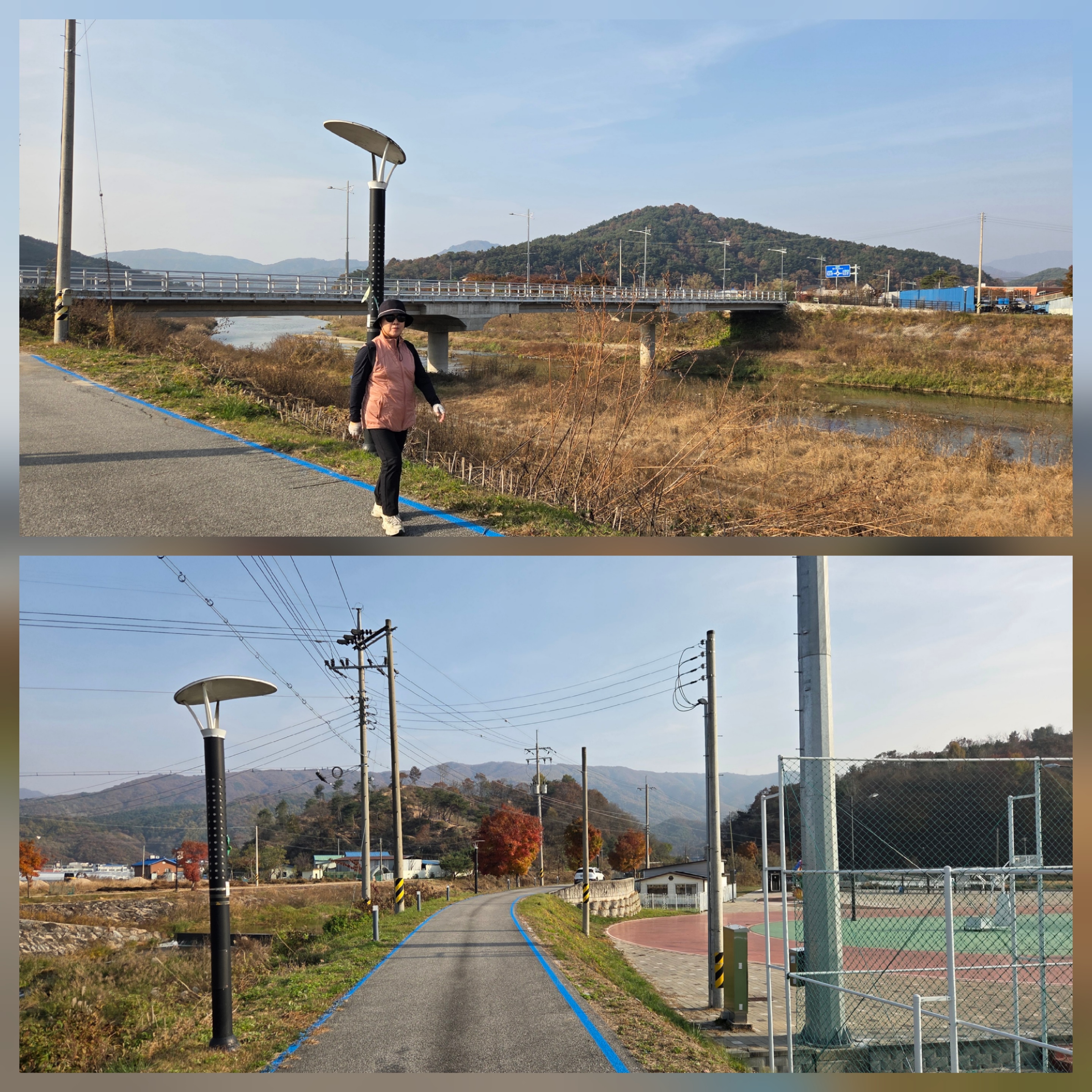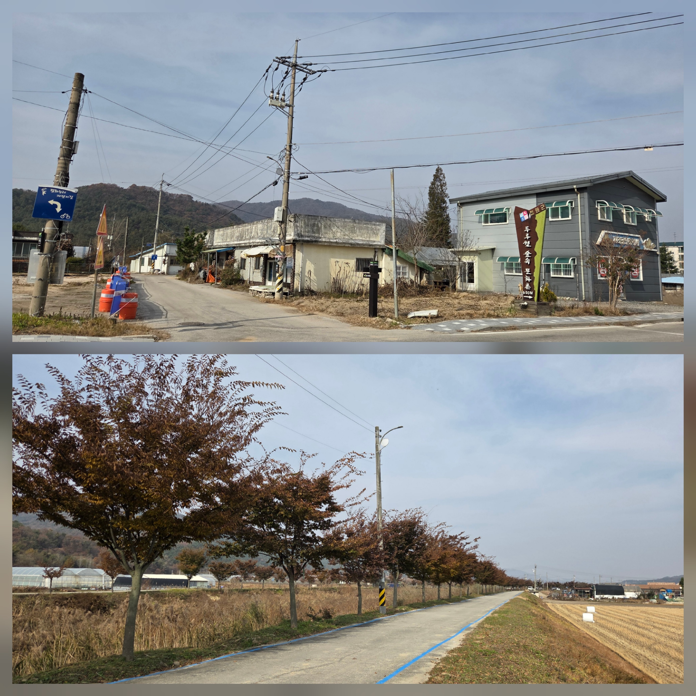 가을이 무르 익은 화강 느티나무 삼십리길을 따라간다. 추수가 끝난 논에 사일리지가 군데둔데 놓여있고, 태양광 발전 설비 밑에서는 버섯이 재배되고 있다.