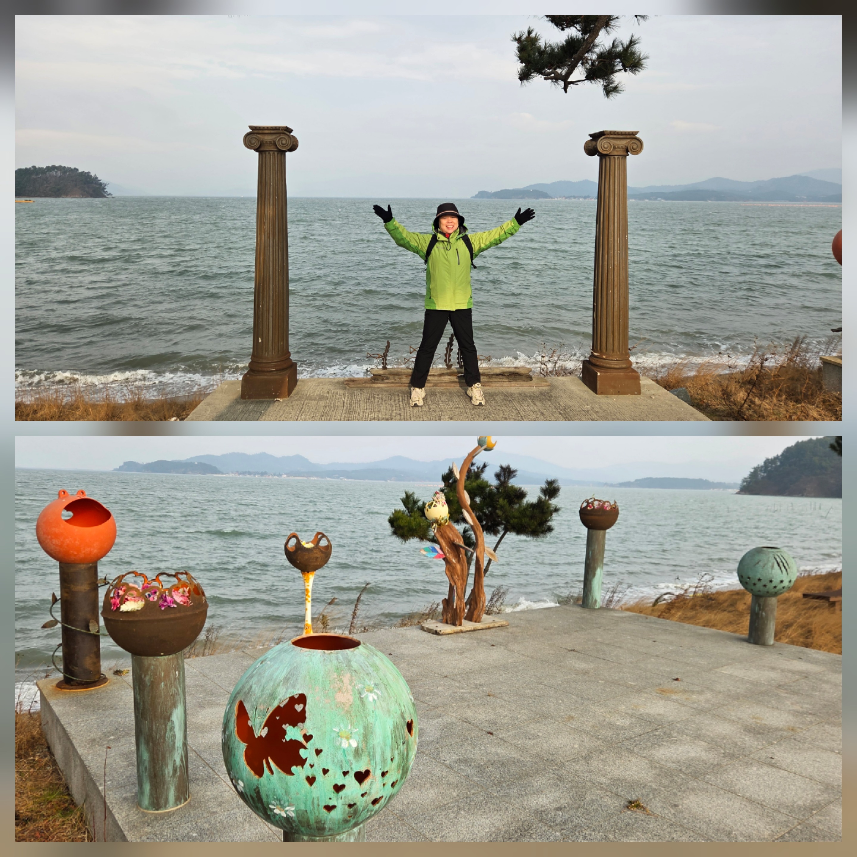 한겨울 차가운 바닷바람이 귓볼을 때린다. 온몸이 절로 움추러든다. 기온도 낮지만 강한 찬바람이 앞길을 막아선다. 해송이 길게 이어진 해수욕장을 지난다. 아무도 없는 해수욕장을 조형물이 외로이 지키고 있다. 여름철 빛을 가리웠던 천막들이 바람에 찢겨 흩날린다. 썰렁한 겨울철 해수욕장은 사람의 마음까지도 썰렁하게 만드는 것 다.