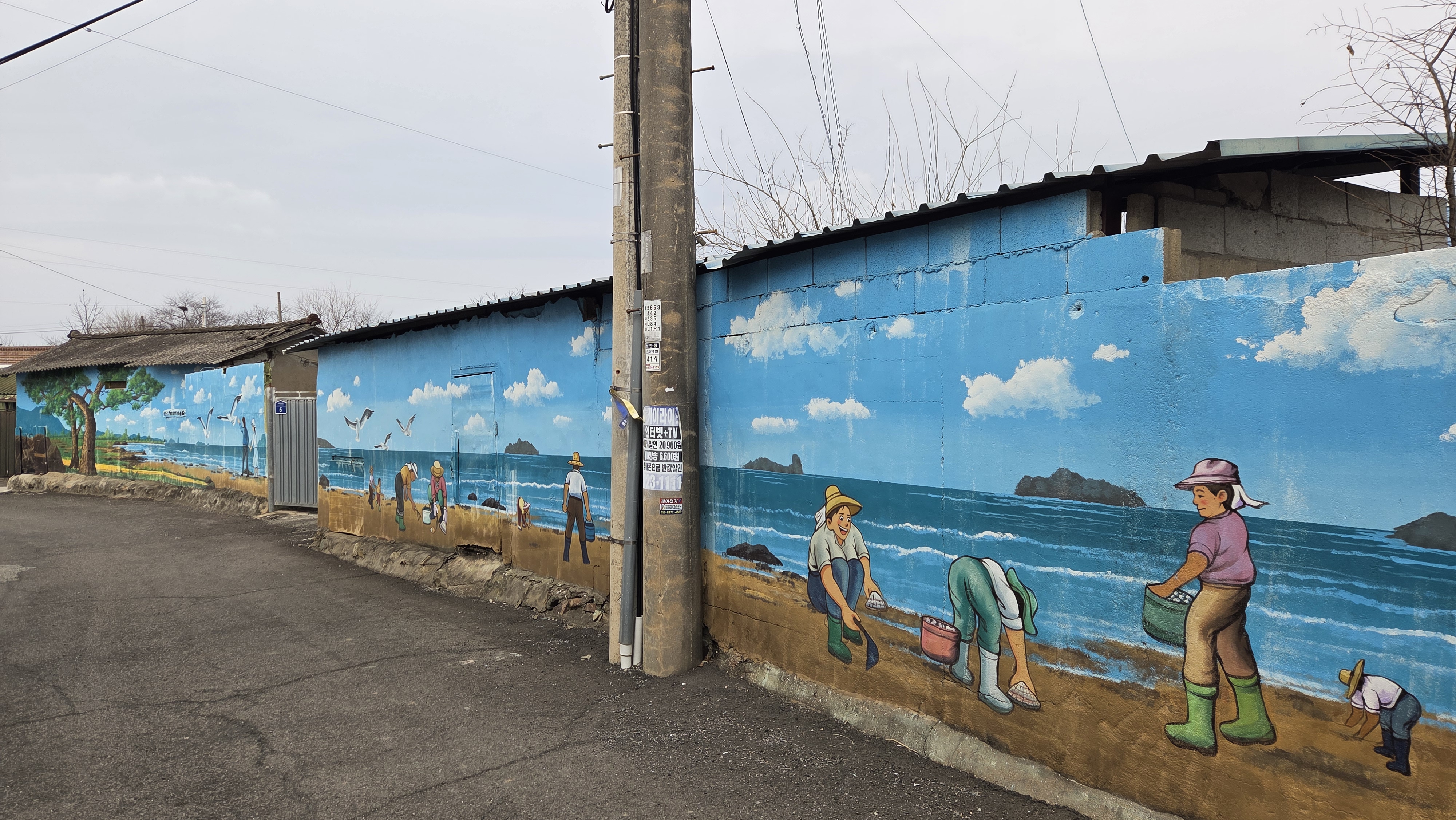 내로마을 노일보건소를 끼고 왼쪽으로 돌아가니 해안가 사람들의 생활모습을 그려놓은 벽화가 시원하게 펼쳐져있다.