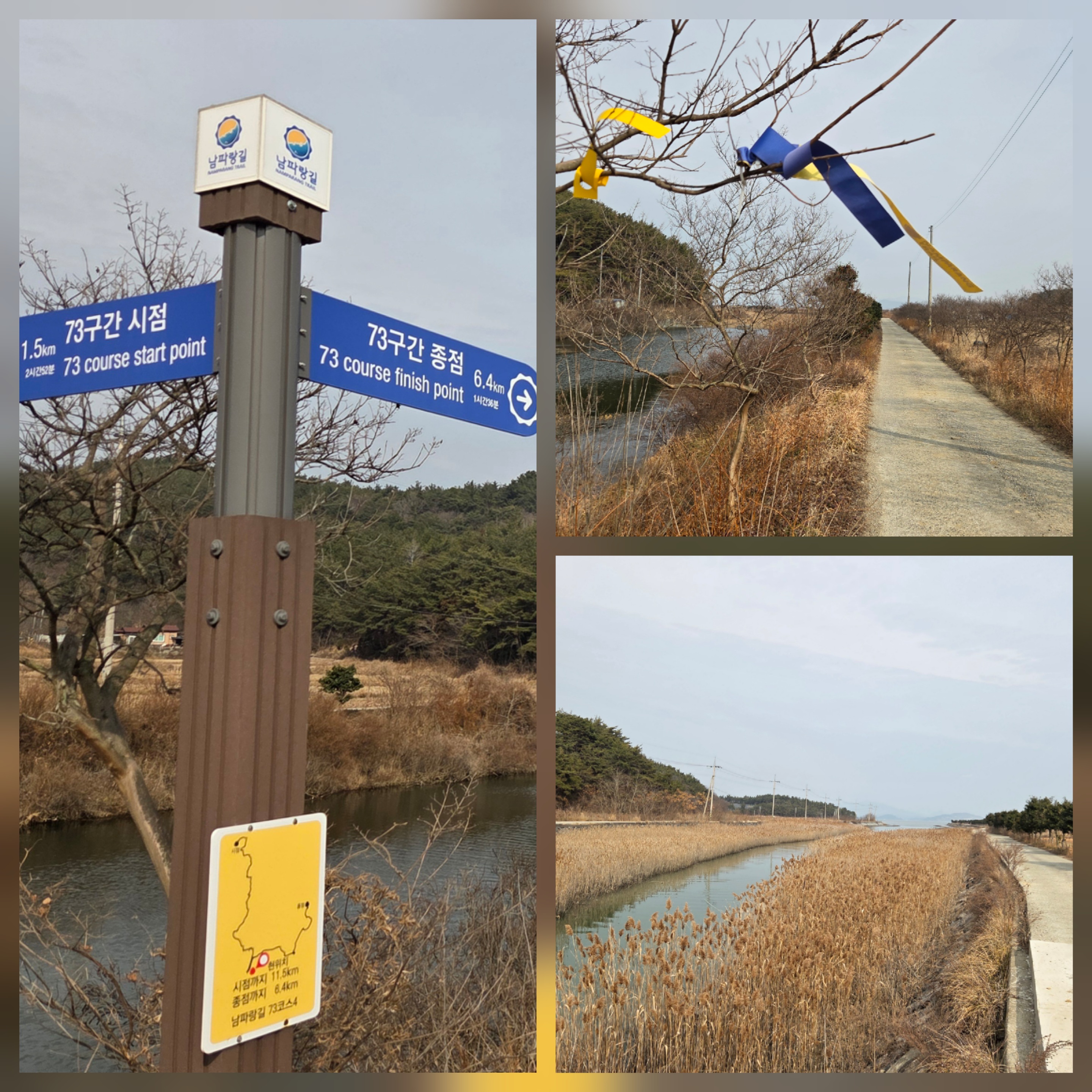 한적한 시골길을 달리던 남파랑길은 두원운석길을 지나 용산천을 만난다.