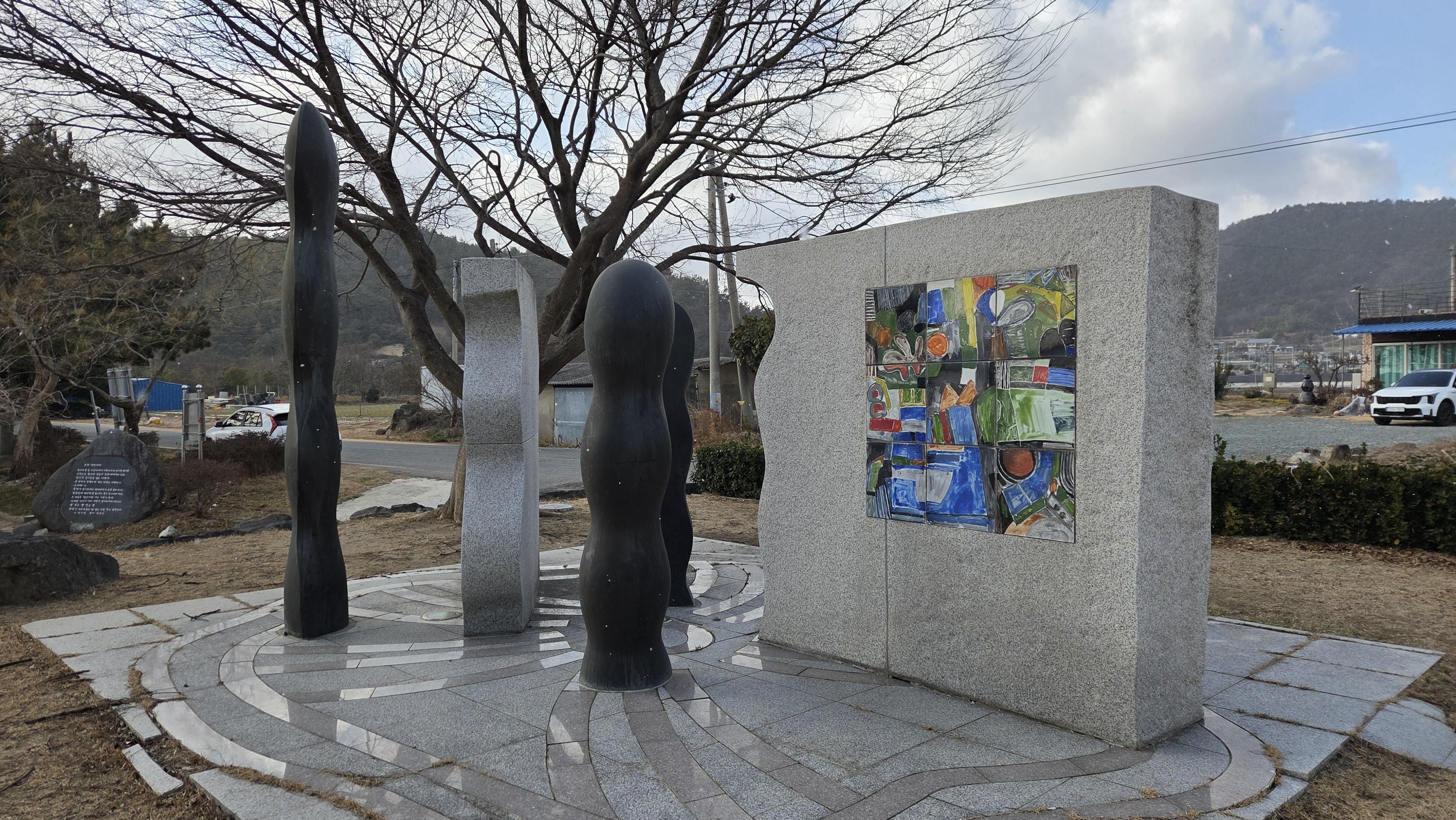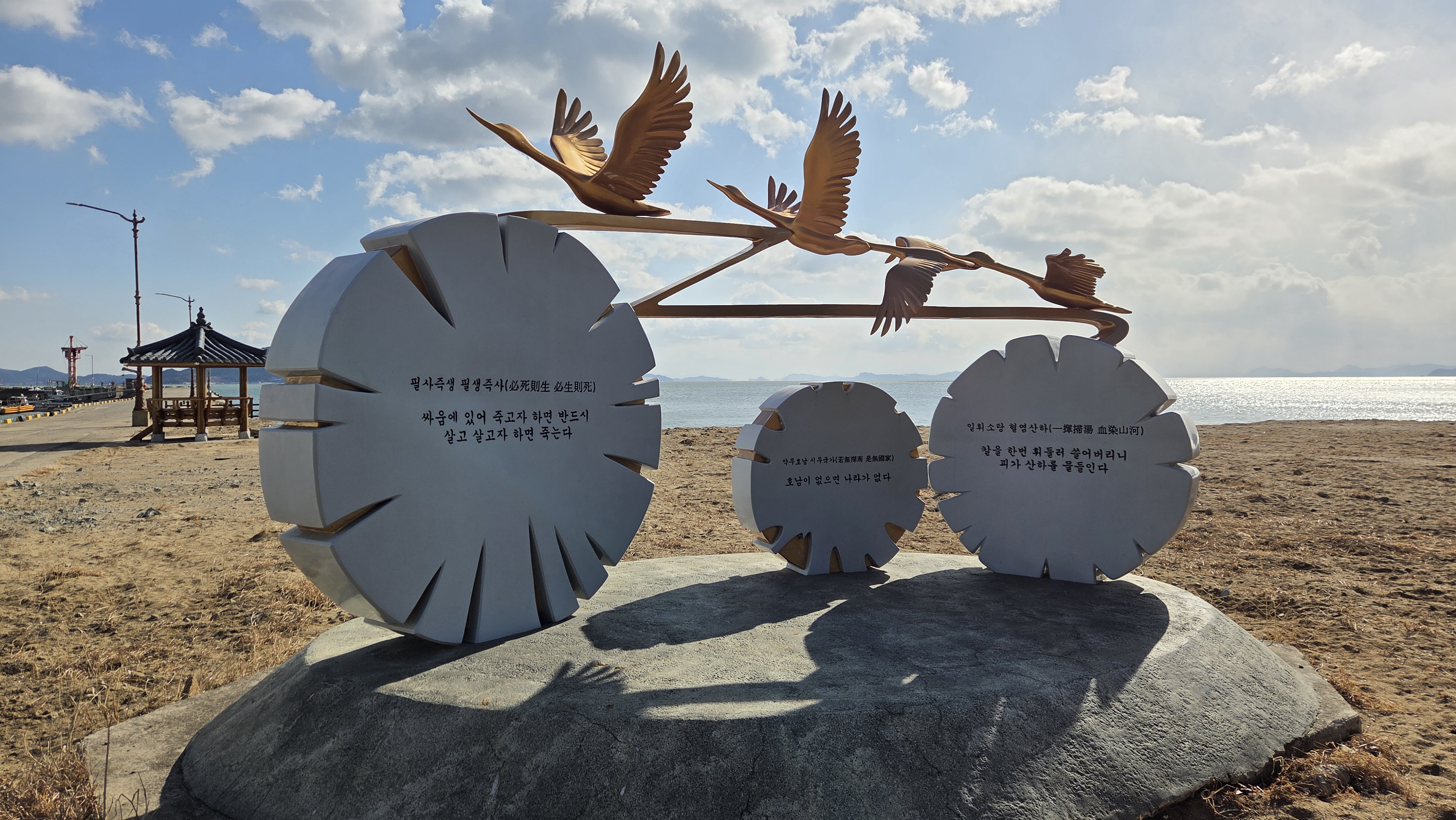 바닷가 조형물에 이순신 장군의 어록이 새겨져 있다.