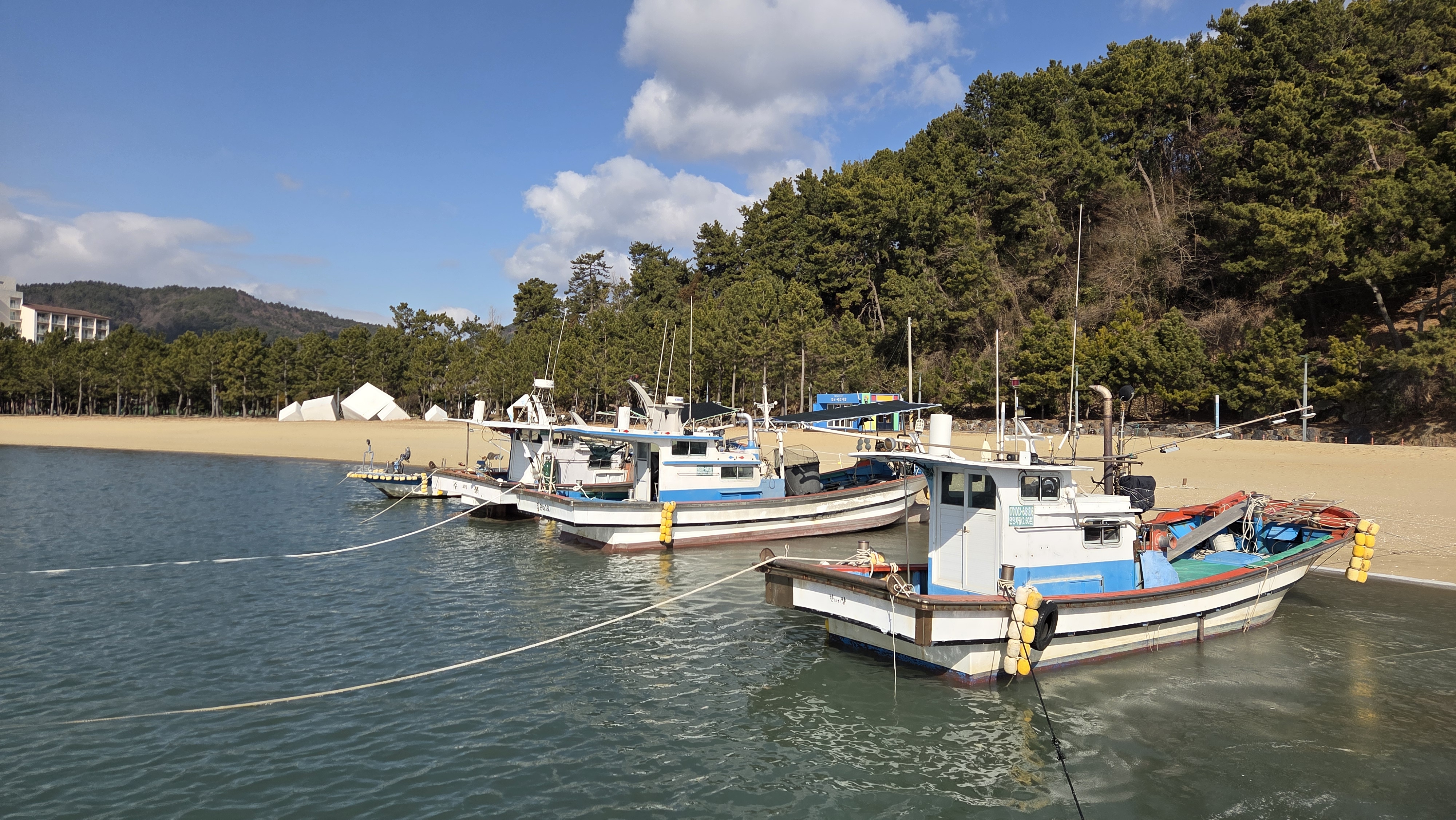 다향울림촌을 지나 남부관광로로 들어선다. 해안가 송림에 폐어구를 활용한 아담한 쉼터가 여름철에는 꽤나 인기가 있었을 것 같다.