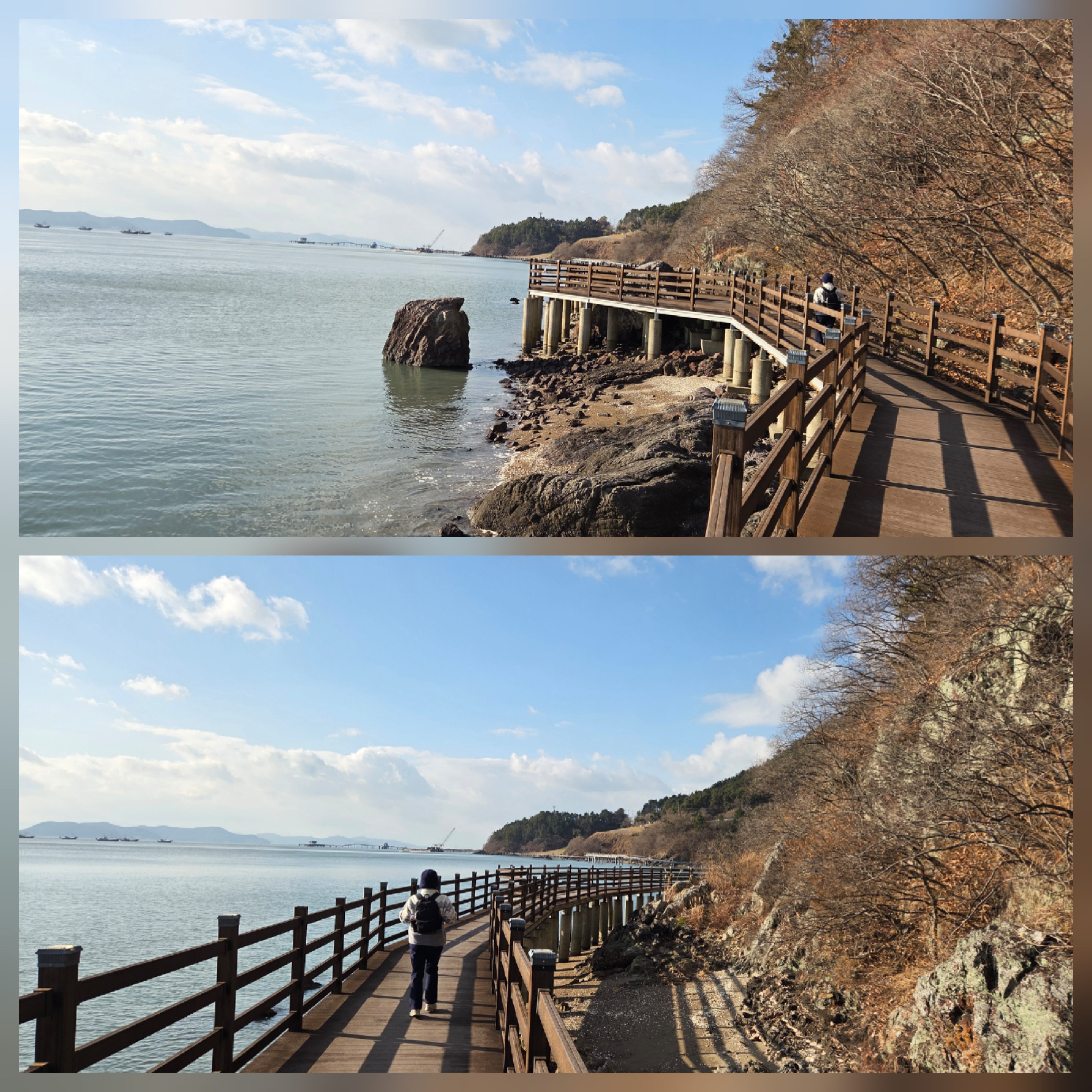 오늘도 찬 바람과 함께 해변길을 걸었다. 기온은 영상이지만 찬 바닷바람이 옷깃을 여미게 한다.