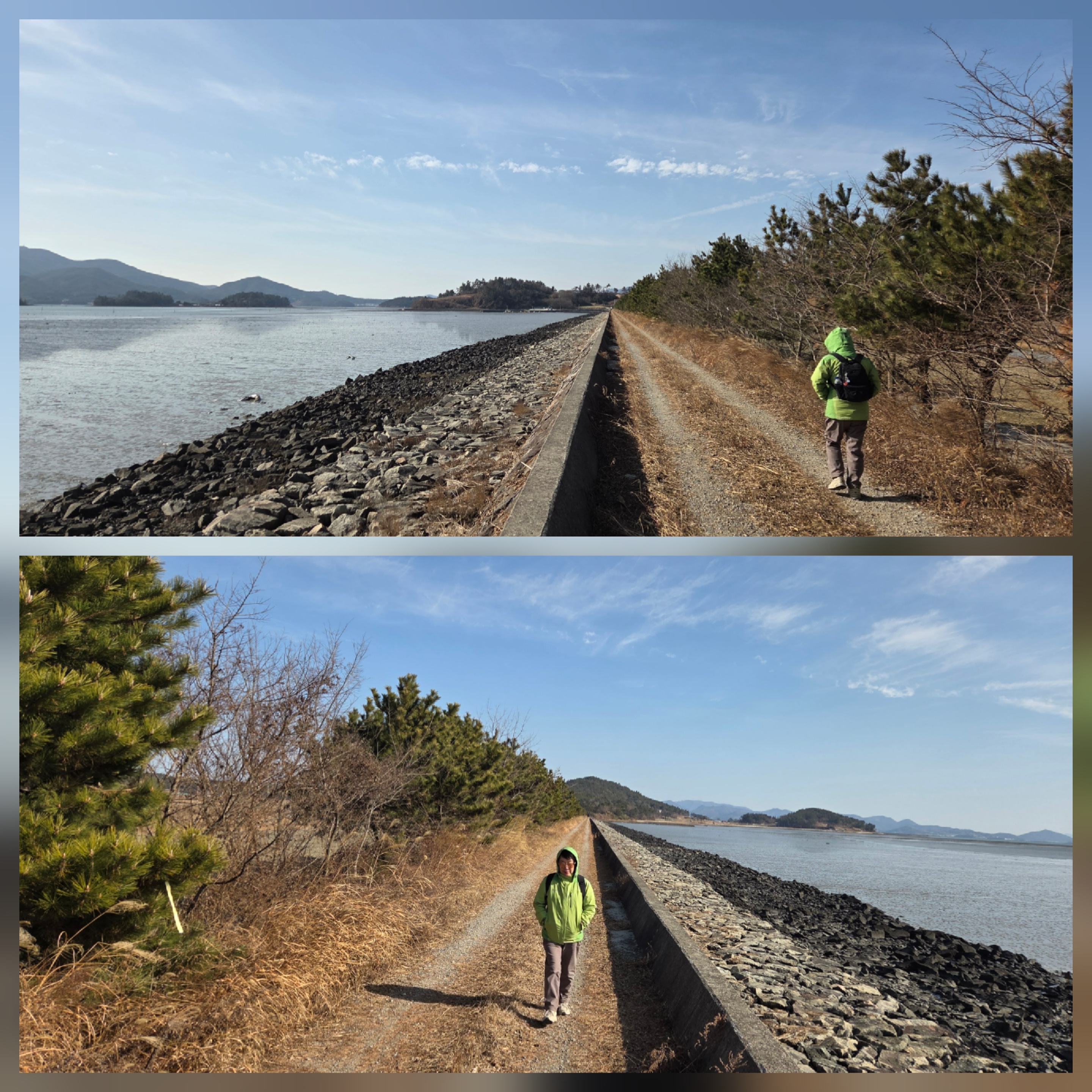 강진군 신전면 사초리의 사초해변공원에서 출발한 남파랑길 85코스는 사내방조제를 따라간다. 오늘도 찬 바닷바람이 만만치 않다.